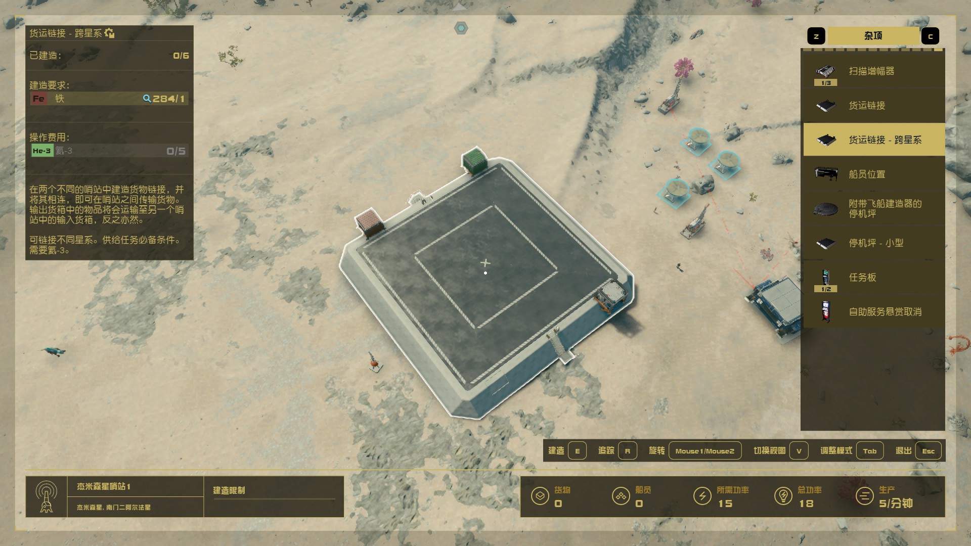 如果你想让收集到的资源自动存放在自己的货舱里,你需要在存放面板上选择建造一个中转集装箱,建造一个小停机坪或者大停机坪。将宇宙飞船停在停机坪上后,