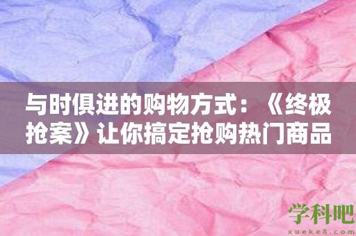 与时俱进的购物方式:《终极抢案》让你搞定抢购热门商品!