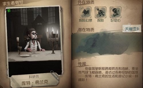 冒险家拥有增益技能和减益技能。冒险buff技能可以让冒险者缩短奔跑留下的足迹,并且在快速爬过棋盘窗口时不会惊动监管者。减益技能好奇心可以让冒险家校准自己。难度和触发概率增加。