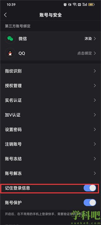 4.最后来到账号与安全的页面中就可以看到【记住登录信息】的功能;